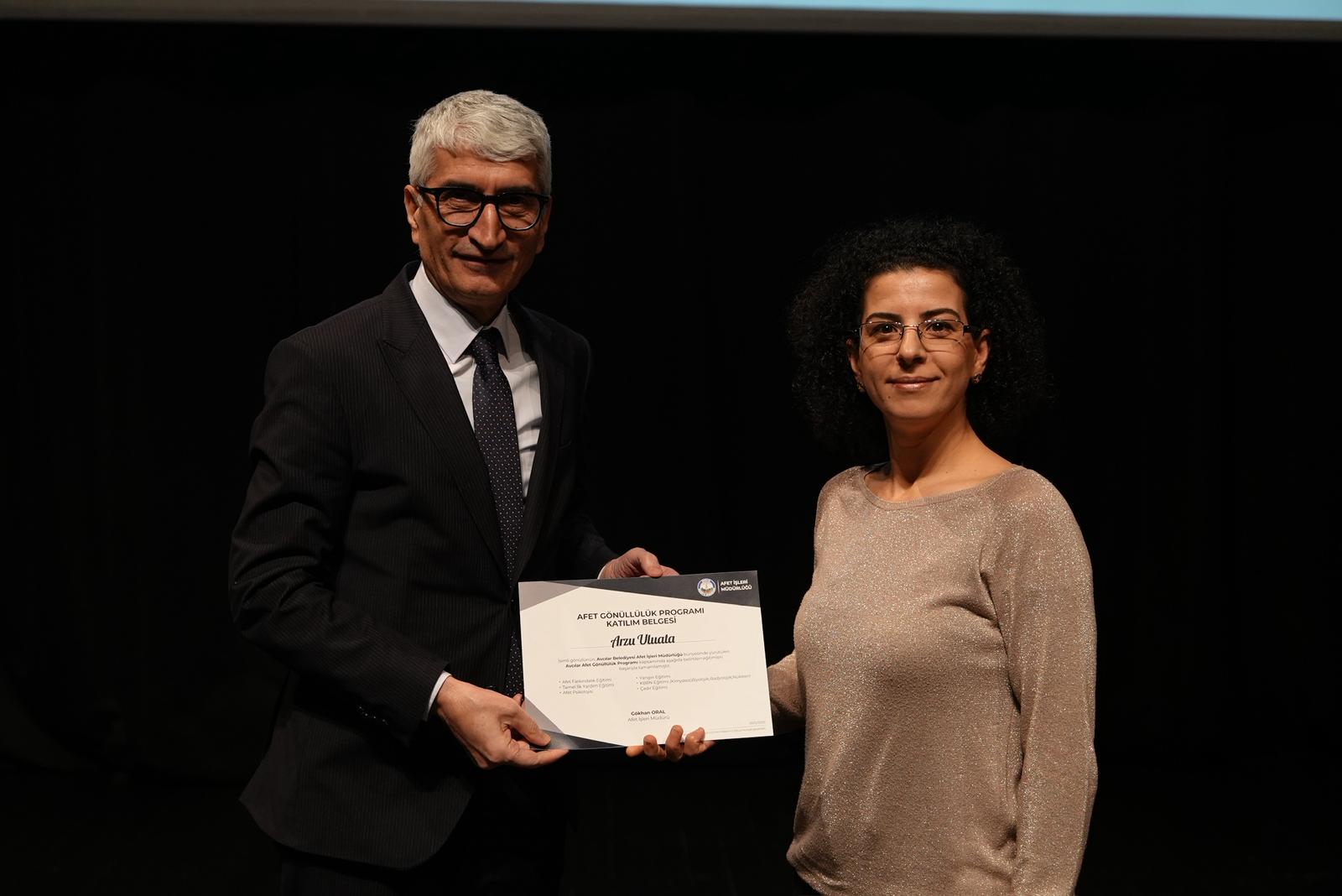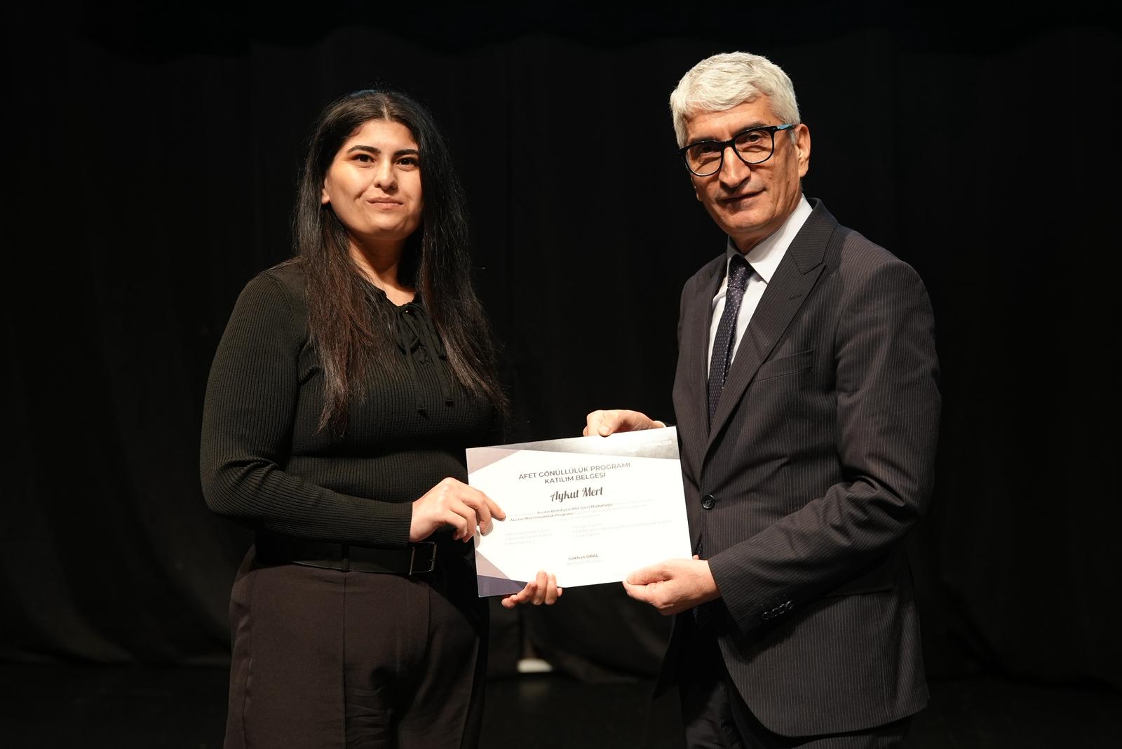 Program kapsamında eğitim sürecini başarıyla tamamlayan afet gönüllülerine sertifikaları takdim edildi. Sertifika alan tüm gönüllüler tebrik edilirken, gönüllülüğün afetlere karşı dirençli bir toplum oluşturmadaki rolü vurgulandı.