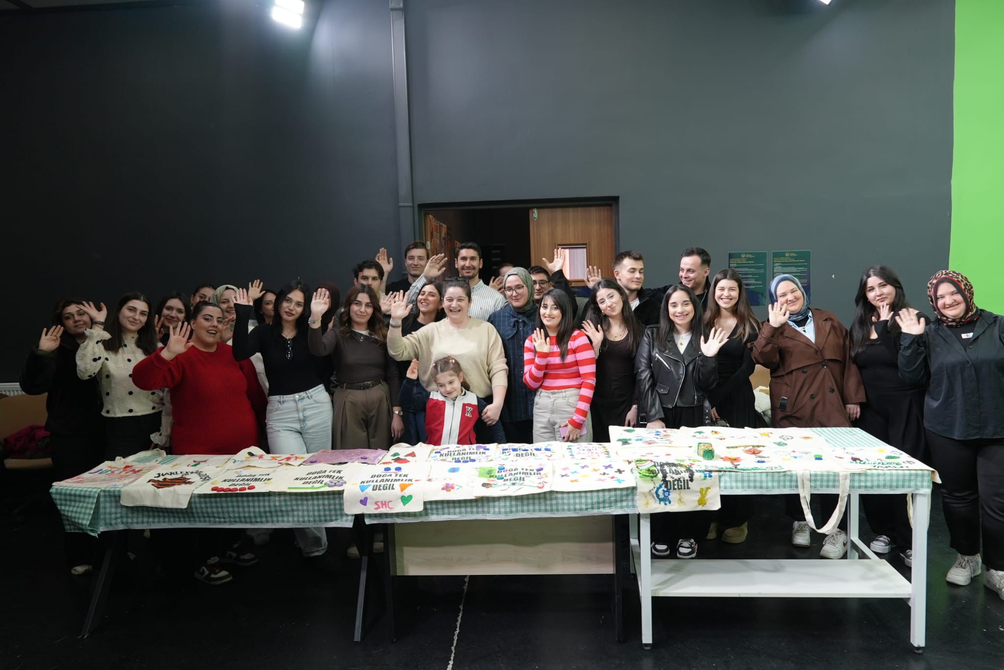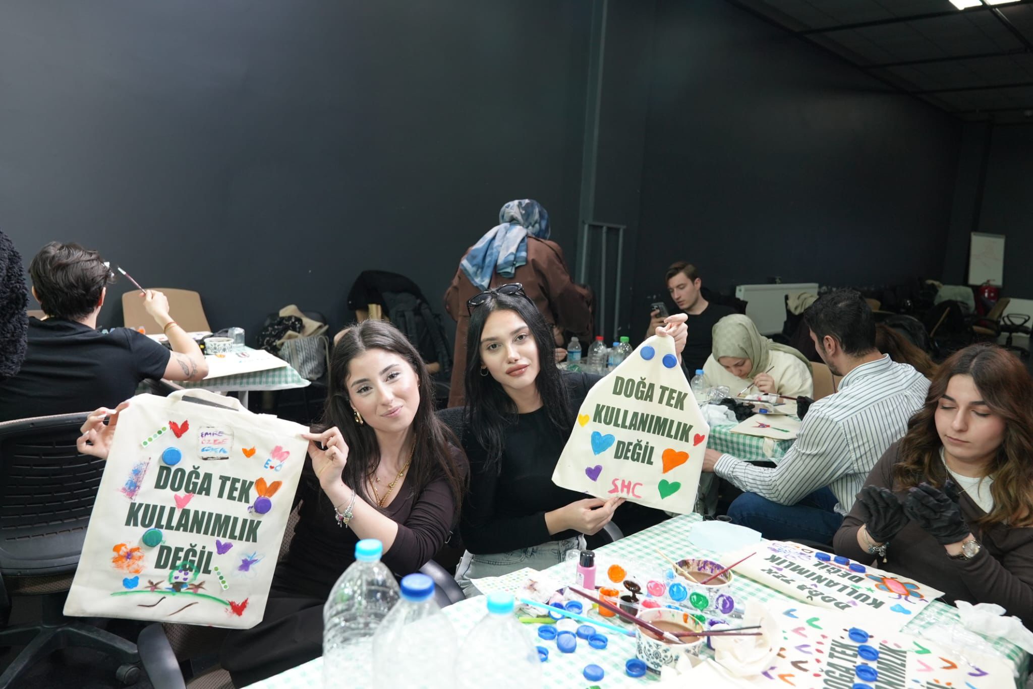 Takas noktasında toplanan plastik atıklar, aynı gün gerçekleştirilen “Plastiği Dönüştür Atölyesi” kapsamında yeniden kullanılmıştır. Atölye etkinliğinde katılımcılar, plastik atıkları kullanarak bez çantalar üzerinde yaratıcı tasarımlar gerçekleştirmiştir. Böylece geri dönüşüm kavramı teorik bir bilgi olmaktan çıkarılarak deneyimsel bir öğrenme sürecine dönüştürülmüştür.